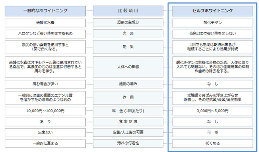 一回あたり5,000円以下の料金でホワイトニングが可能で、通常のホワイトニングに比べ低価格での施術が可能になりました。
